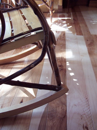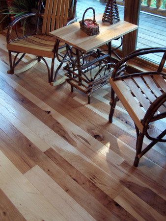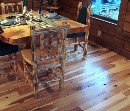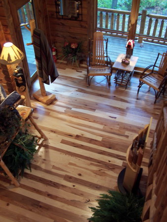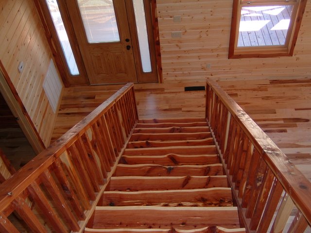 And Rustic #2 and #3 Hickory Floor in a Cabin, with Cedar Stairs