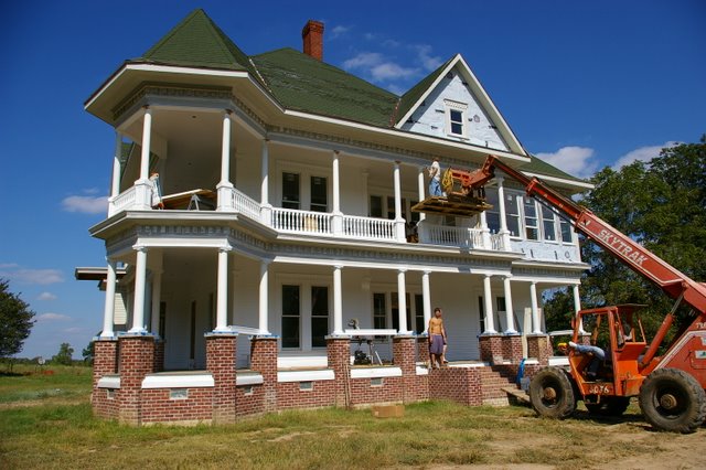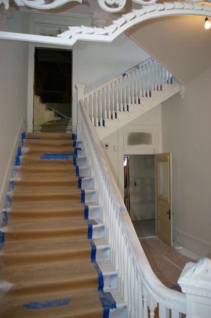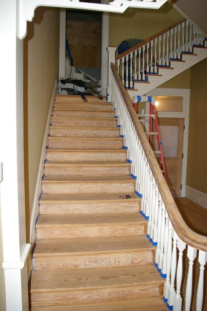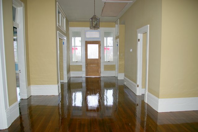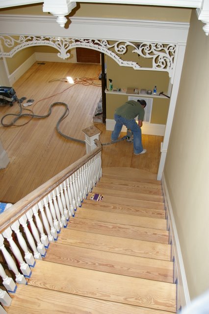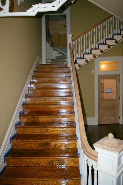 These are pictures of one of the most unique homes that we have done.  This is a beautiful “Plantation Home” near Wynne, AR.   We refinished these floors and this set of Stairs back in 2007.  The floors were in amazingly good shape, even though the home had been neglected and even sitting empty for several years.   The floors were stained with Provincial Stain, and finished with Oil based Finish.  I hope to have some “moved in” pictures of this home soon.